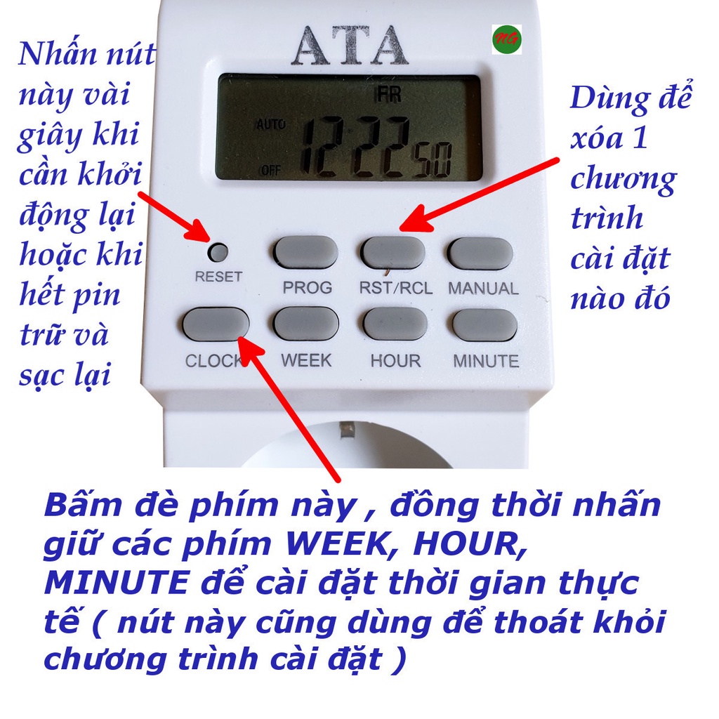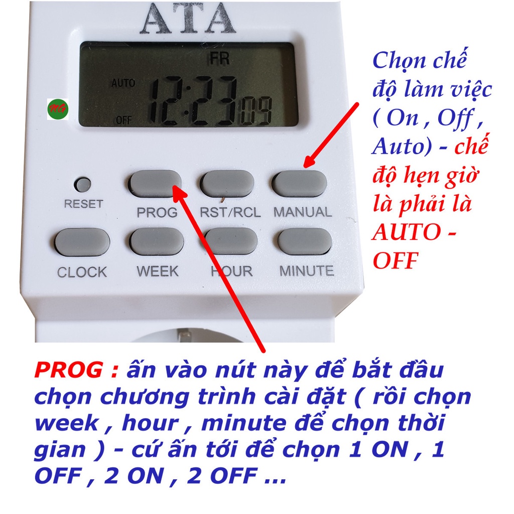 Thiết Bị Điện Gia Dụng > Mạch điện & Phụ tùng > Ổ cắm điện & Dây nối || Ổ cắm hẹn giờ tắt mở thiết bị điện kiểu điện tử ATA AT20BCòn hàng