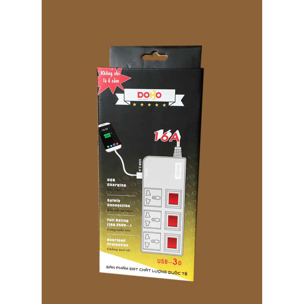 Ổ Cắm Kèm Cổng USB DoBo 3D 16A 3 ổ cắm - 3 Mét