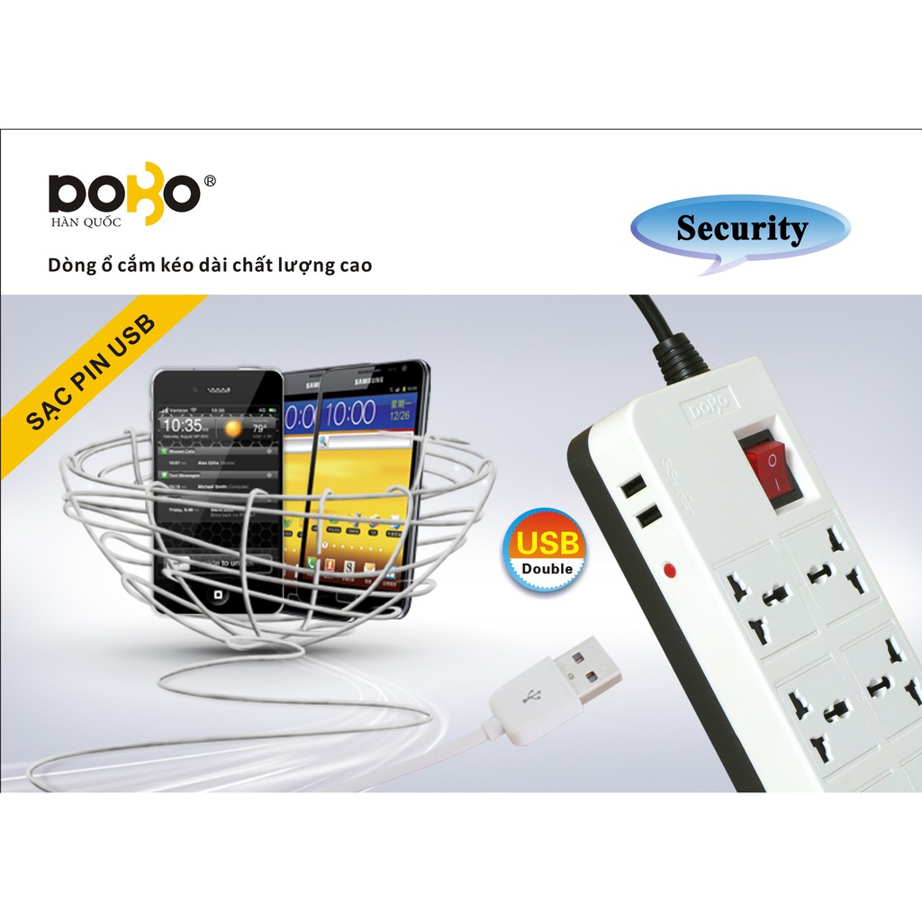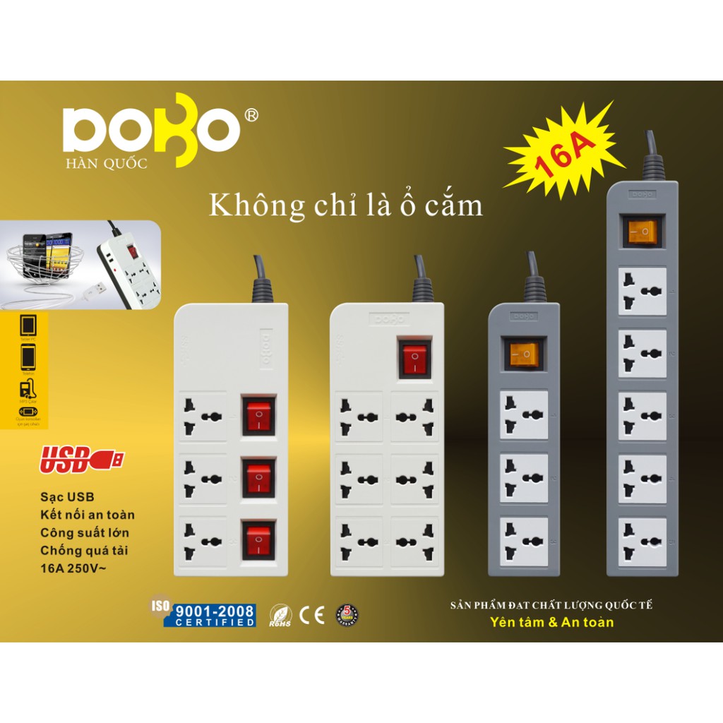 DOBO - HÀN QUỐC là Tập đoàn sản xuất thiết bị điện, thiết bị đóng cắt và chống giật điện hàng đầu tại Hàn Quốc, với kinh nghiệm sản xuất và phát triển các dòng sản phẩm thiết bị điện phân phối với độ an toàn chính xác cao, đã sản xuất dòng sản phẩm Ổ Cắm Nối Dài Kèm Cổng USB DoBo 6D 16A - 6 Ổ cắm 3 Mét sử dụng trong các hộ gia đình và các công ty xí nghiệp tại Việt Nam.