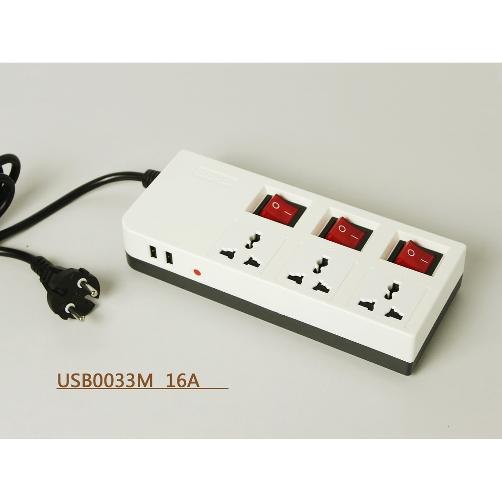 Ổ Cắm Kèm Cổng USB DoBo 3D 16A - 3 Ổ cắm 3 MétĐiện áp hoạt động: 110V~250V – 50Hz