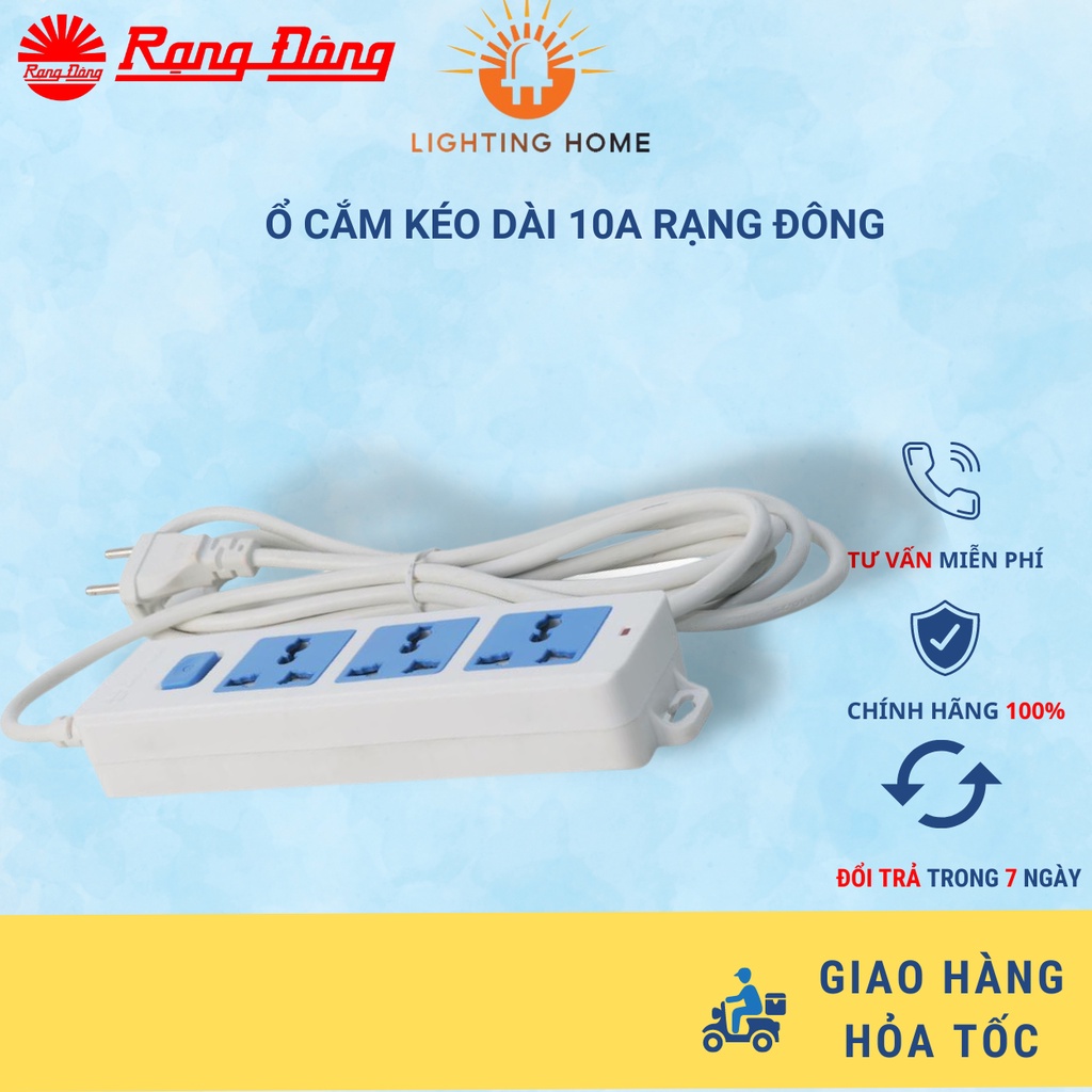 Giới thiệu Ổ cắm kéo dài 2200W - 10A ~250V RẠNG ĐÔNG 3 ổ, dây 3m/5m siêu dài thich hợp mọi ổ cắm và kéo dài mọi nơi nếu muốn