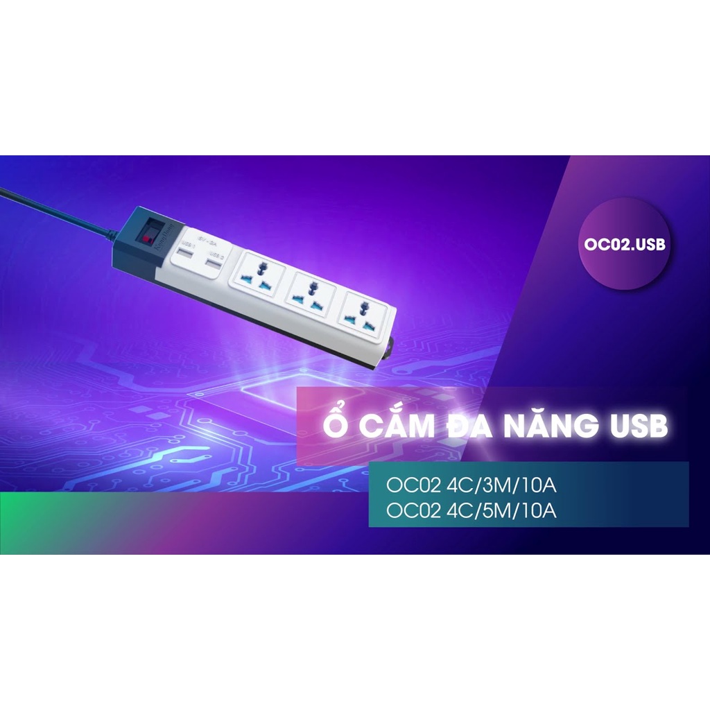 📌 Ổ cắm điện đa năng Rạng Đông, 3 ổ cắm, có công tắc và đèn báo hiển thị, dây dài 3mĐặc điểm: