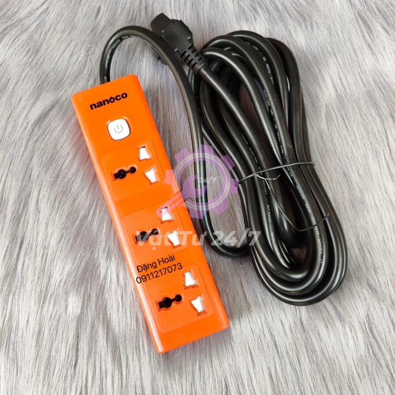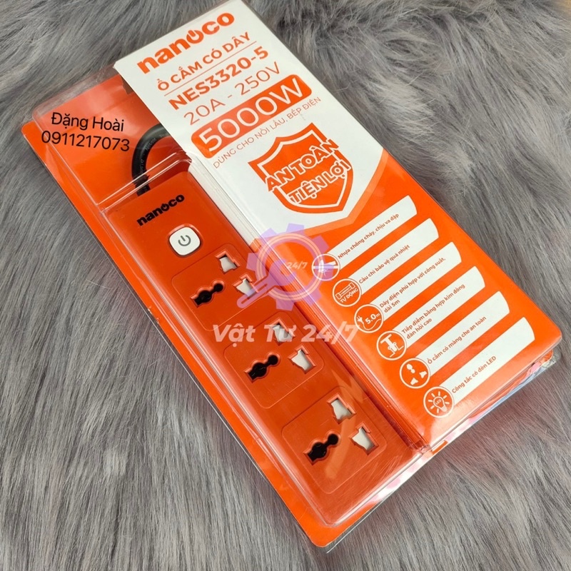 Thiết Bị Điện Gia Dụng > Mạch điện & Phụ tùng > Ổ cắm điện & Dây nối || Ổ cắm kéo dài có dây 5m Nanoco NES3320-5 20A 3 lỗ đa năng công suất lớn 5000W cao cấp có mang che dùng bếp điện nồi lẩuCòn hàng