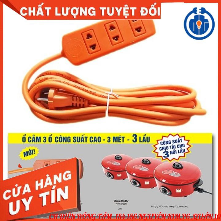 Thiết Bị Điện Gia Dụng > Mạch điện & Phụ tùng > Ổ cắm điện & Dây nối || Ổ cắm kéo dài công suất cao LiOA - 3000W 3 ổ cắm 3m dây 2 lõi - S3TC- Công suất cho 3 nồi Lẩu điệnCòn hàng