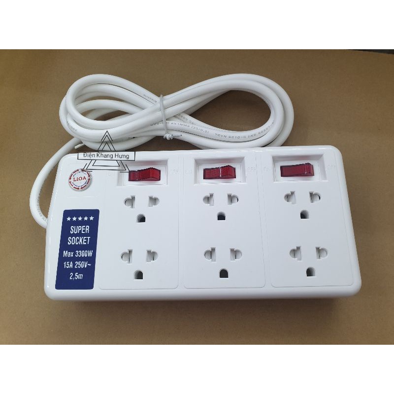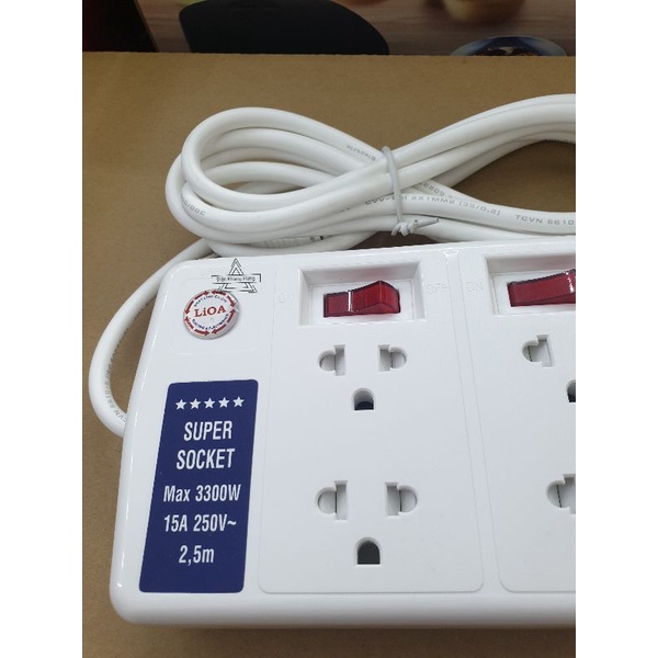 Ổ cắm kéo dài đa năng LiOA 6 ổ cắm Công suất lớn 3300W Dây 2.5m 2 lõi 3 lõi 6SS2.5-2Ổ CẮM KÉO DÀI CÔNG SUẤT LỚN