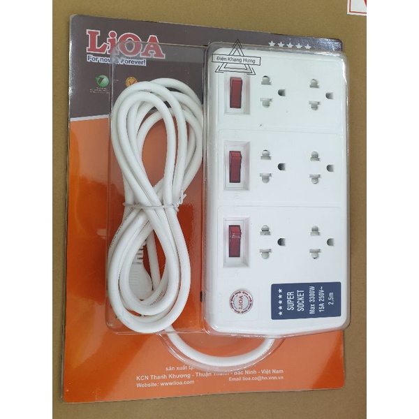 Giới thiệu Ổ cắm kéo dài đa năng LiOA 6 ổ cắm Công suất lớn 3300W Dây 2.5m 2 lõi 6SS2.5-2