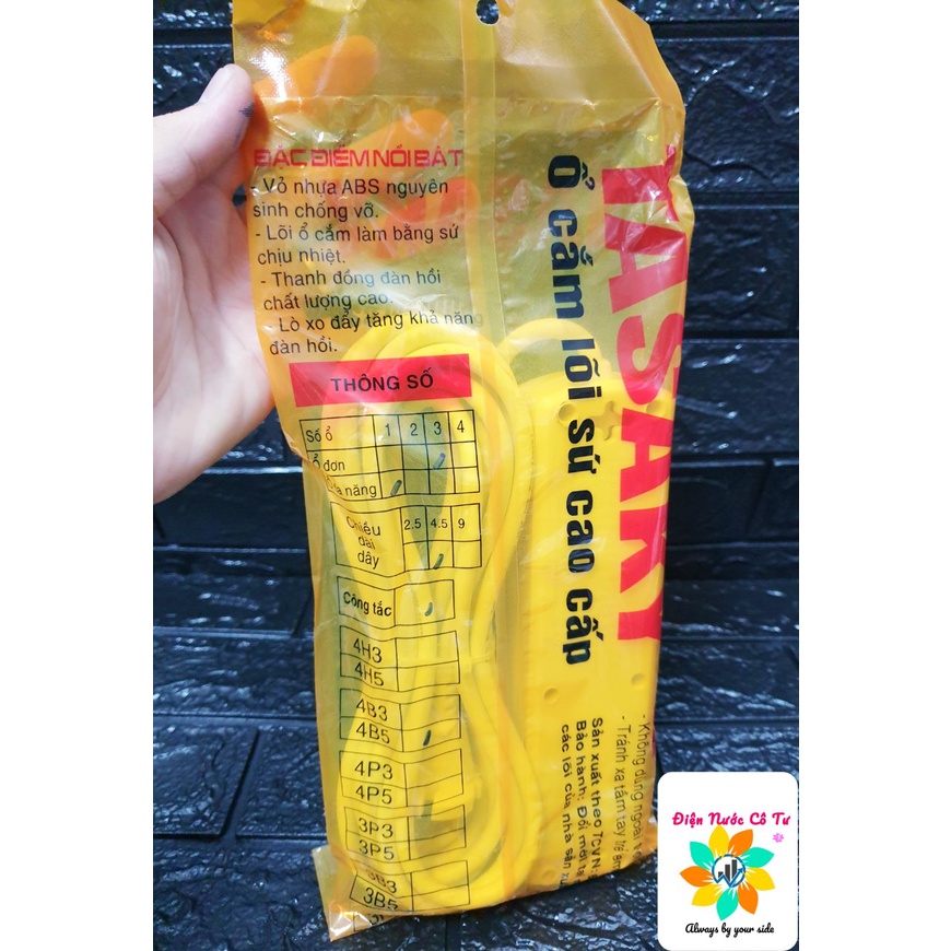 Thiết Bị Điện Gia Dụng > Mạch điện & Phụ tùng > Ổ cắm điện & Dây nối || Ổ Cắm Kéo Dài Lõi Sứ Chịu Tải Chịu Nhiệt Tasaky 10A(2200W)Còn hàng