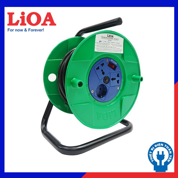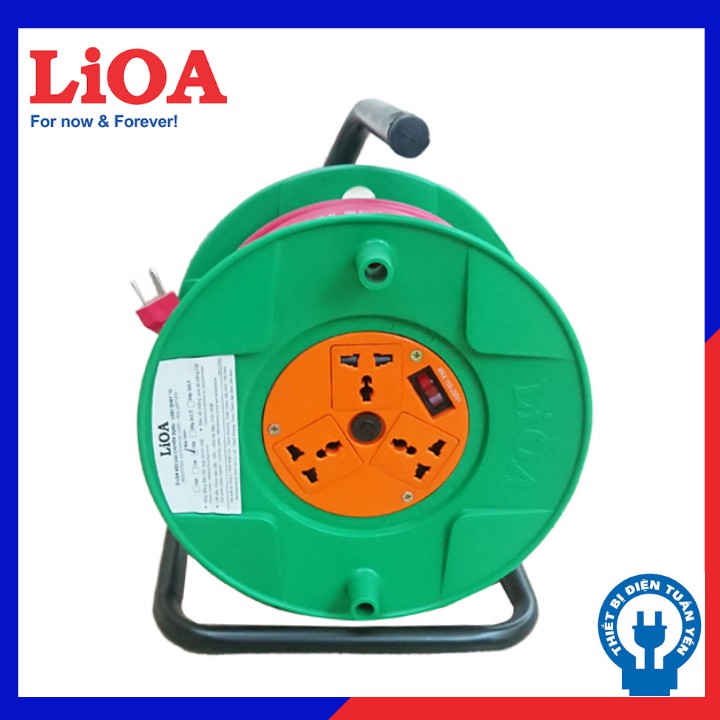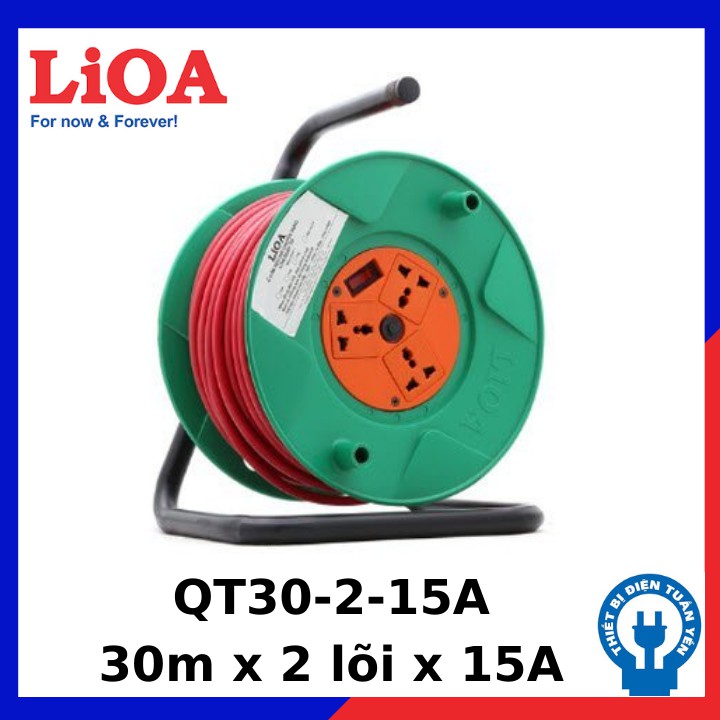 - Ổ cắm kéo dài quay tay kiểu Rulo to LiOA QT30-2-15A 30m x 2 15A (Xanh lá cây đậm) có thể dùng được cho các thiết bị như: quạt, tivi, tủ lạnh, nồi cơm điện, đầu đĩa, âm ly, bếp từ, bàn ủi, máy hút bụi... hay những nơi có nhu cầu sử dụng ổ cắm dây dài.