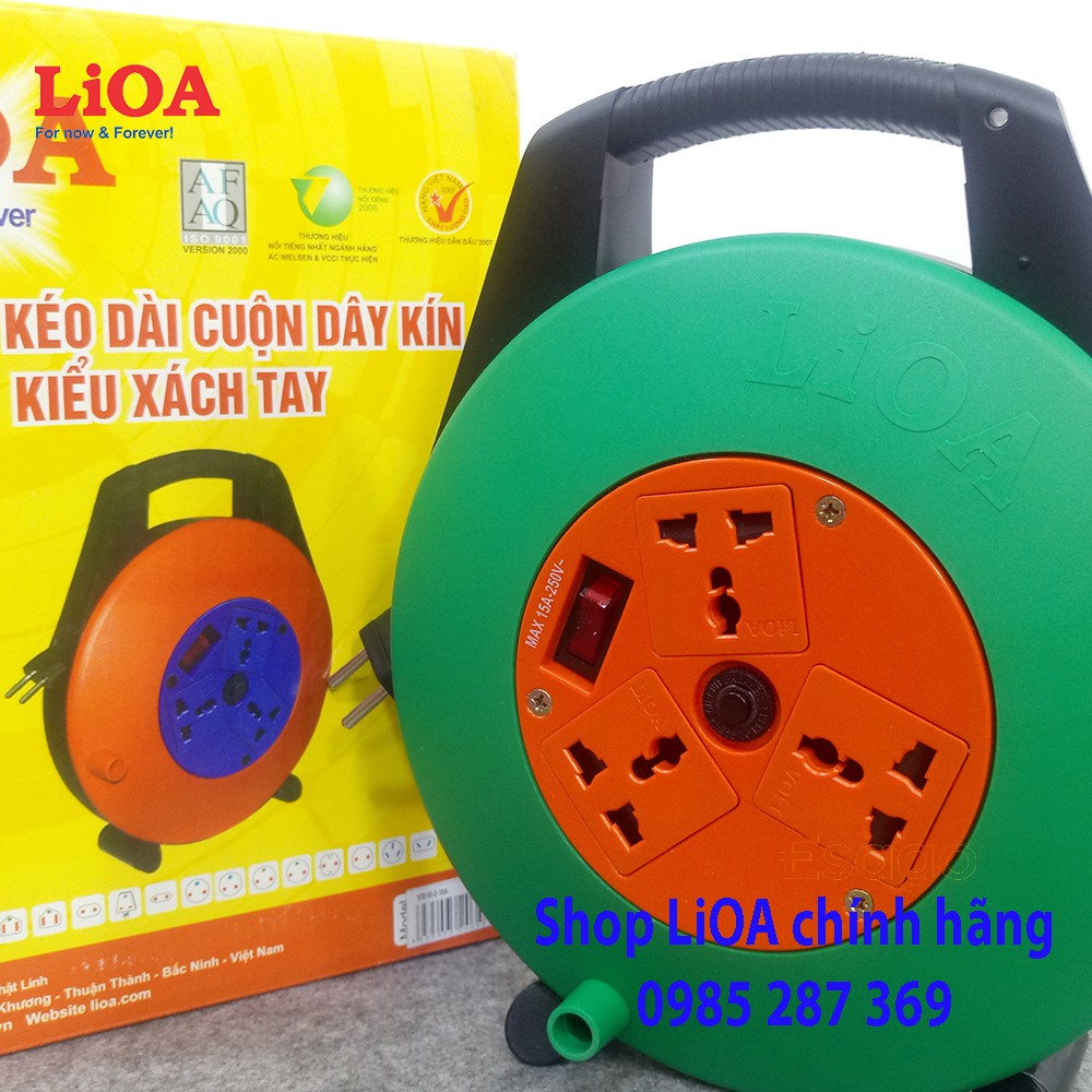 Ổ cắm kéo dài quay tay LIOA - Kiểu xách tay 15A 10m dây