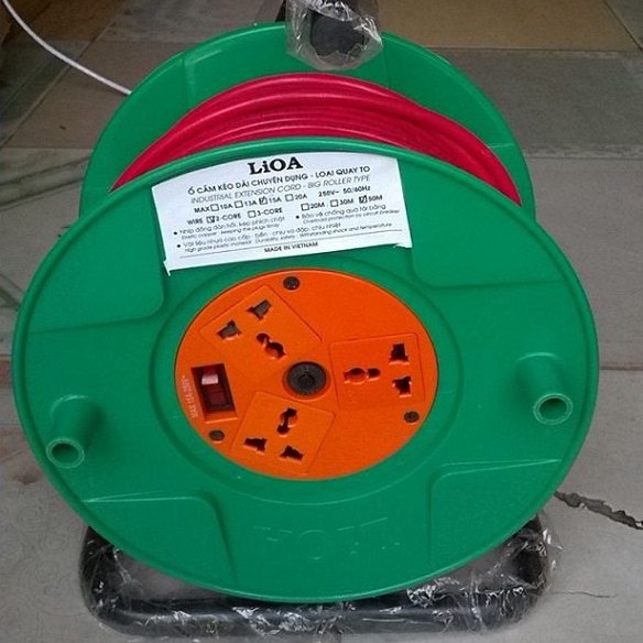 Ổ cắm kéo dài quay tay kiểu Rulo LIOA QT20-2-15A 50m dây 15A có thể dùng được cho các thiết bị như: quạt, tivi, tủ lạnh, nồi cơm điện, đầu đĩa, âm ly, bếp từ, bàn ủi, máy hút bụi... và các loại thiết bị có công suất nhỏ hơn 2200W - 3300W hay những nơi có nhu cầu sử dụng ổ cắm dây dài.