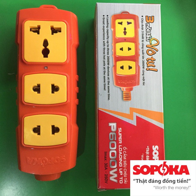 Xin lưu ý: trên thị trường đã xuất hiện 1 số hàng giả, hàng nhái sản phẩm này của SOPOKA. Để quý khách hàng tránh mua phải hàng giả, hàng nhái hàng kém chất lượng, chúng tôi xin thông báo: các sản phẩm chính hãng của Công ty có mặt ổ cắm chịu nhiệt ( đốt không cháy) màu vàng cam, có tem chống hàng giả chính hãng của SOPOKA đã được đăng ký bảo vệ độc quyền.