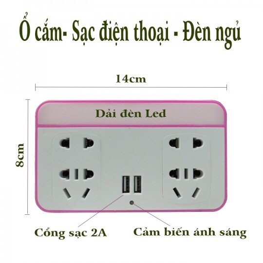 -Ổ cắm kiêm sạc điện thoại và đèn ngủ cảm biến ánh sáng