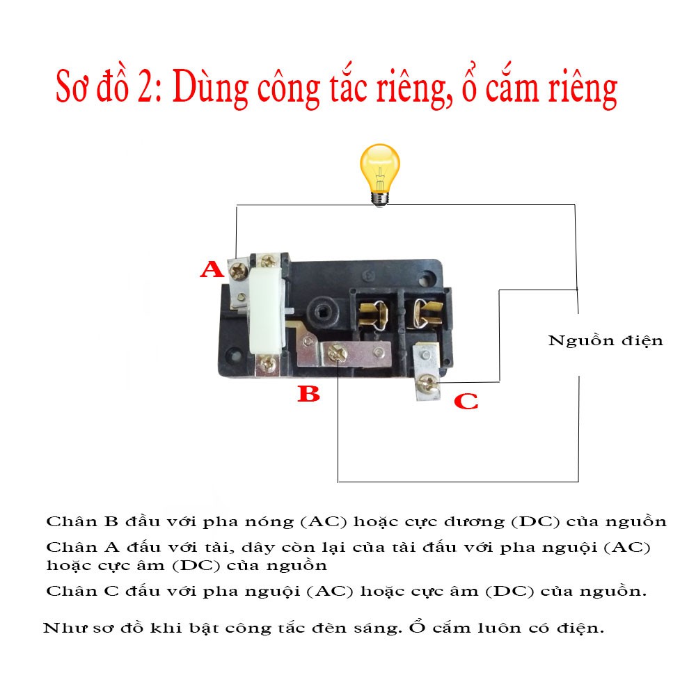 Thiết Bị Điện Gia Dụng > Mạch điện & Phụ tùng > Ổ cắm điện & Dây nối || Ổ cắm liền công tắc Vinakip 6A/250VCòn hàng
