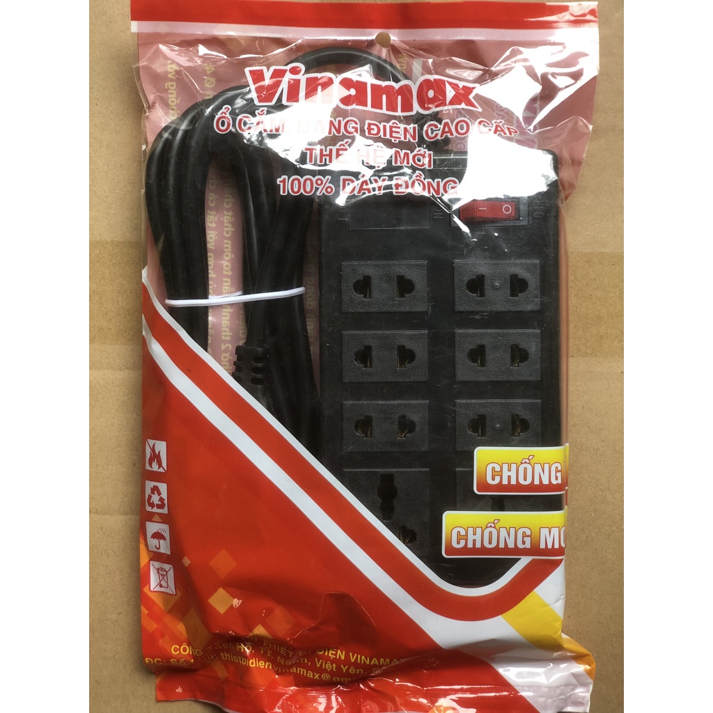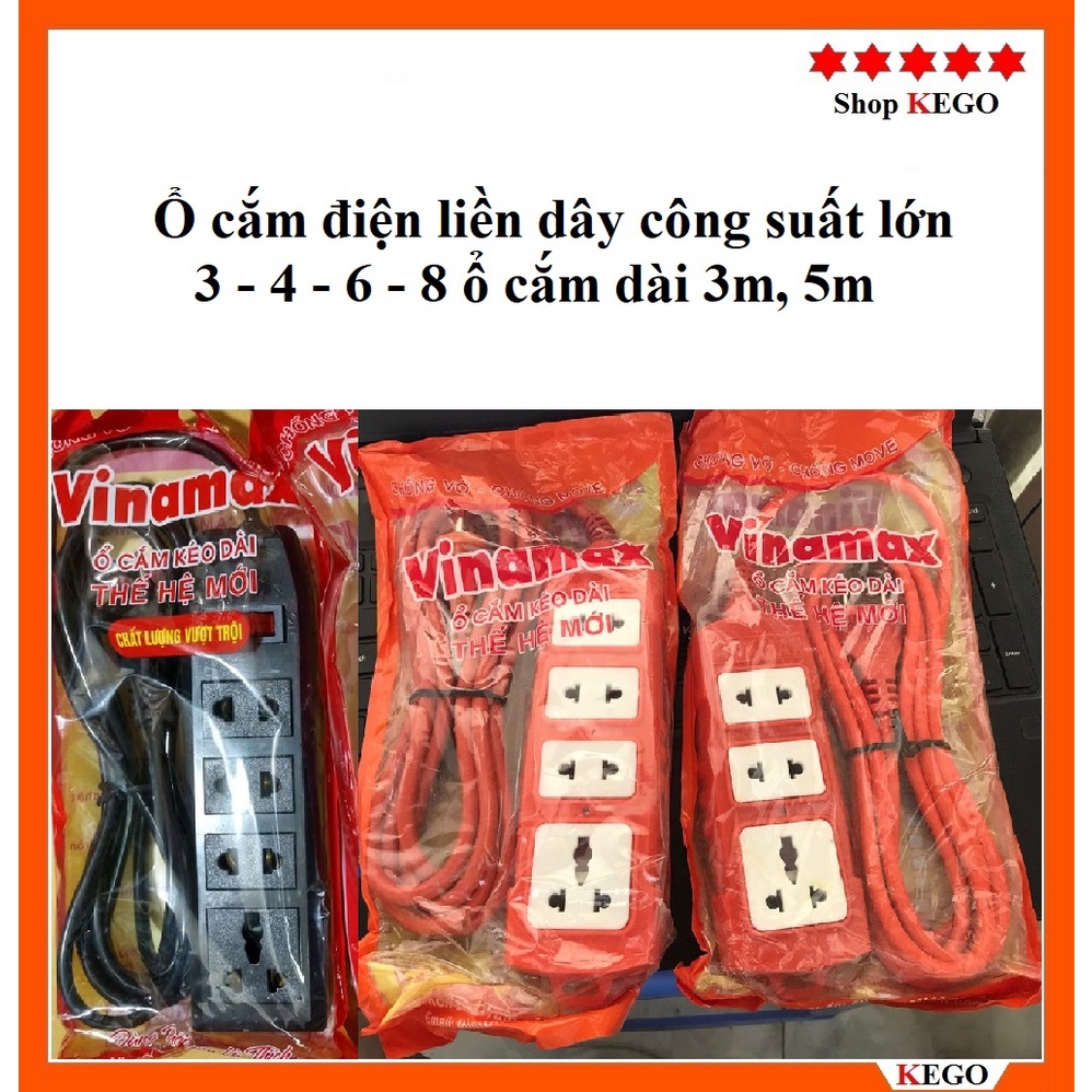 Ổ cắm liền dây 3 lỗ đến 8 lỗ có công tắc bật tắt dài 3m, 5m chịu tải, chống cháy