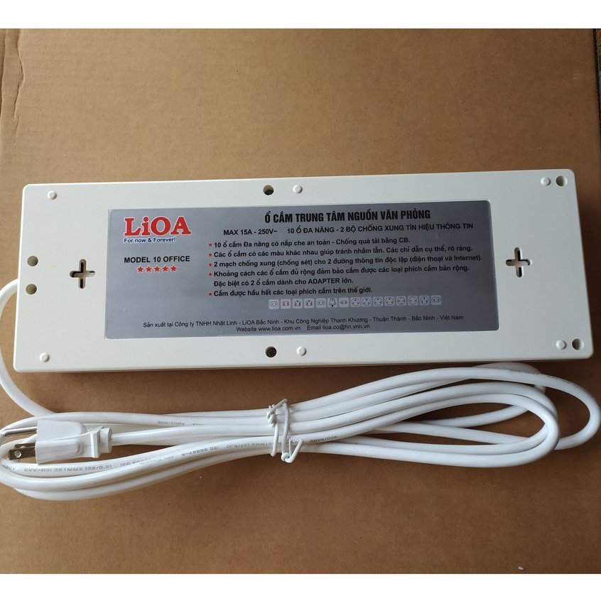 -- Ổ cắm dân dụng Lioa 10OFFICE là loại ổ cắn có 10 ổ Đa năng cắm dc hầu hết các kiểu phích trên thế giớ ( cắm phích 3 chân kiểu ANH, MĨ,, ÚC NHẬT.... kiểu.2 chân ( TRÒN VÀ DẸT dc thiết kế mẫu mã bền đep.và sang trọng tiện lợi cho người sử dụng, vỏ được làm bằng nhựa ABS có khả năng chịu nhiệt cao,chịu va đập tác động bên ngoài,.NHÍP ĐỒNG bên trong dc chế tạo từ đồng đàn hồi nhập khẩu, tiếp xúc tốt khôngo lỏng nẻo,không đánh lửa đảm bảo AN TOÀN tuyệt đối cho người sử dụng.. trên mỗi ổ cắm nhà sản xuất đã ghi tên thiết bị dùng cho ổ cắm đấy.