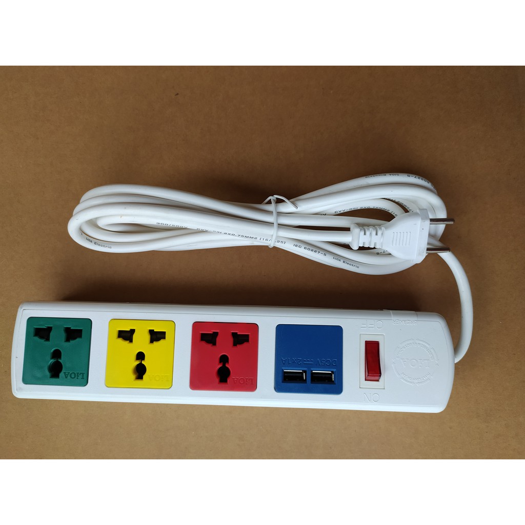 Thiết Bị Điện Gia Dụng > Mạch điện & Phụ tùng > Ổ cắm điện & Dây nối || Ổ cắm Lioa 4DN có cổng sạc USB 5V-1ACòn hàng