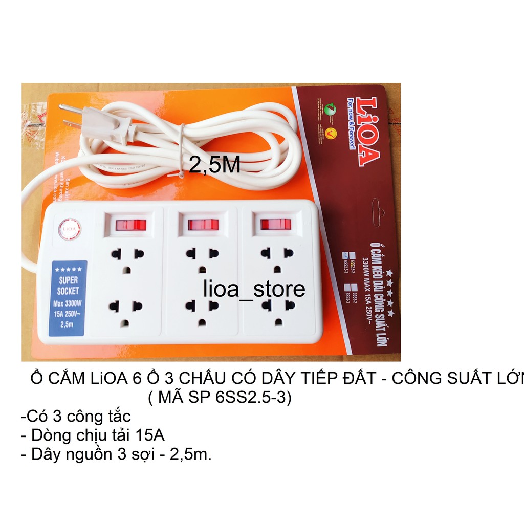 Giới thiệu Ổ CẮM LiOA 6 Ổ 3 CHẤU - CÔNG SUẤT LỚN ( MÃ SP : 6SS2.5-2 và 6ss2.5-3).