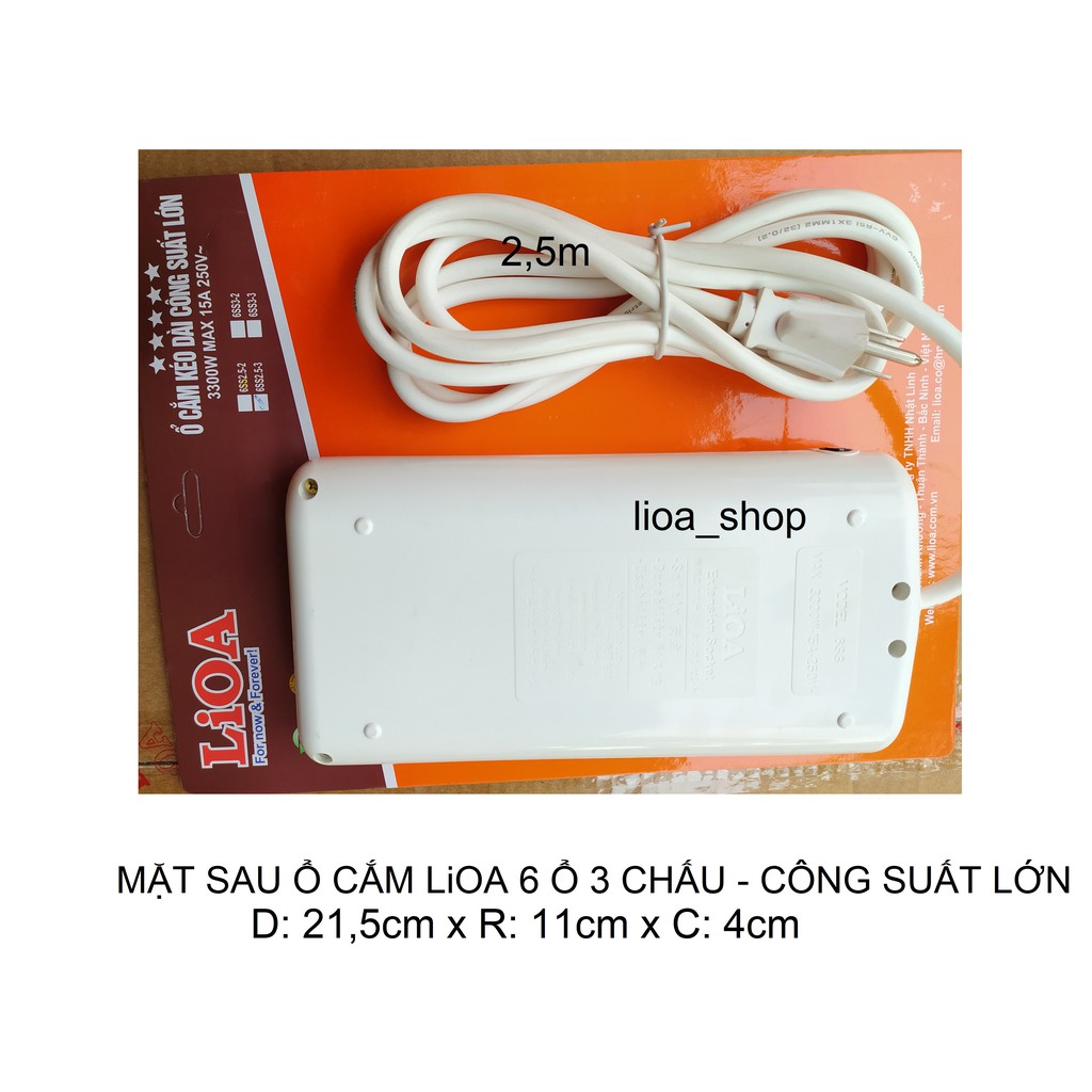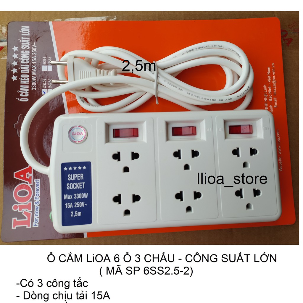 Thiết Bị Điện Gia Dụng > Mạch điện & Phụ tùng > Ổ cắm điện & Dây nối || Ổ CẮM LiOA 6 Ổ 3 CHẤU - CÔNG SUẤT LỚN ( MÃ SP : 6SS2.5-2 và 6ss2.5-3).Còn hàng