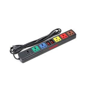 Ổ cắm 6 ổ đa năng có 2 công tắc, có bảo vệ quá tải bằng CB Dây dài 3m hoặc 5m