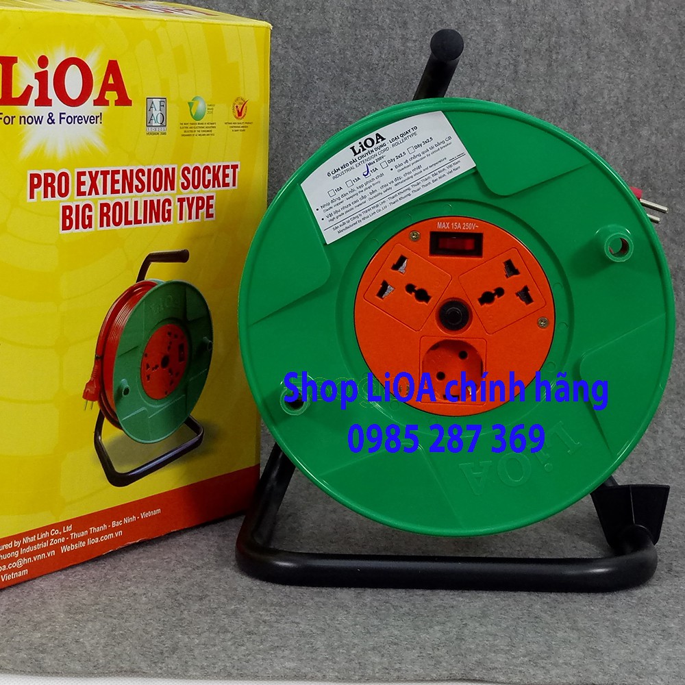 Thiết Bị Điện Gia Dụng > Mạch điện & Phụ tùng > Ổ cắm điện & Dây nối || Ổ Cắm LiOA Quay Tay Kéo Dài Kiểu Rulo, Loại Phổ Thông, Dây Dài 50m. Model QT50-2-15ACòn hàng
