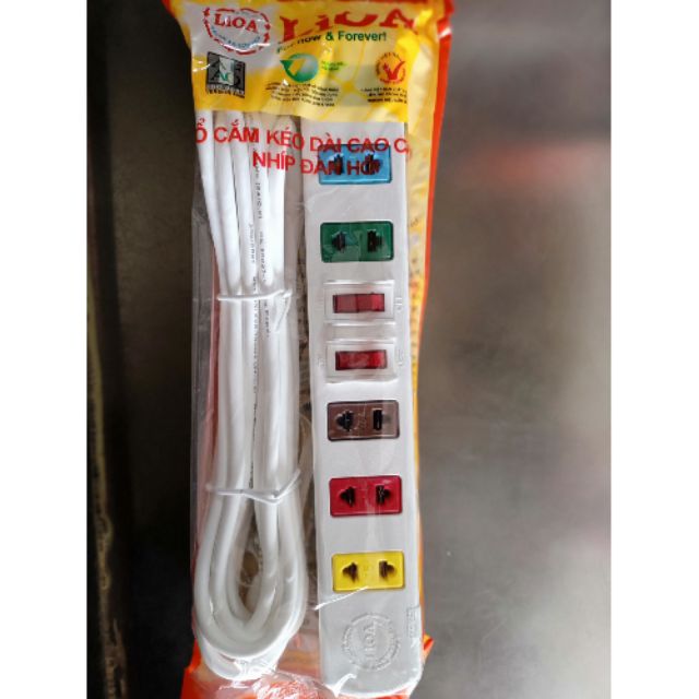 Thiết Bị Điện Gia Dụng > Mạch điện & Phụ tùng > Ổ cắm điện & Dây nối || Ổ CẮM LIOA TRẮNG 6S5W (6 LỖ 2 Ổ - DÂY 5M)Còn hàng