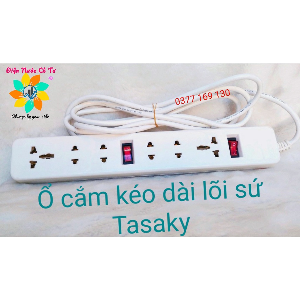 Thiết Bị Điện Gia Dụng > Mạch điện & Phụ tùng > Ổ cắm điện & Dây nối || Ổ cắm lõi sứ kéo dài 6 lỗ cắm 2 công tắc chịu tải chịu nhiệt cao cấp TasakyCòn hàng