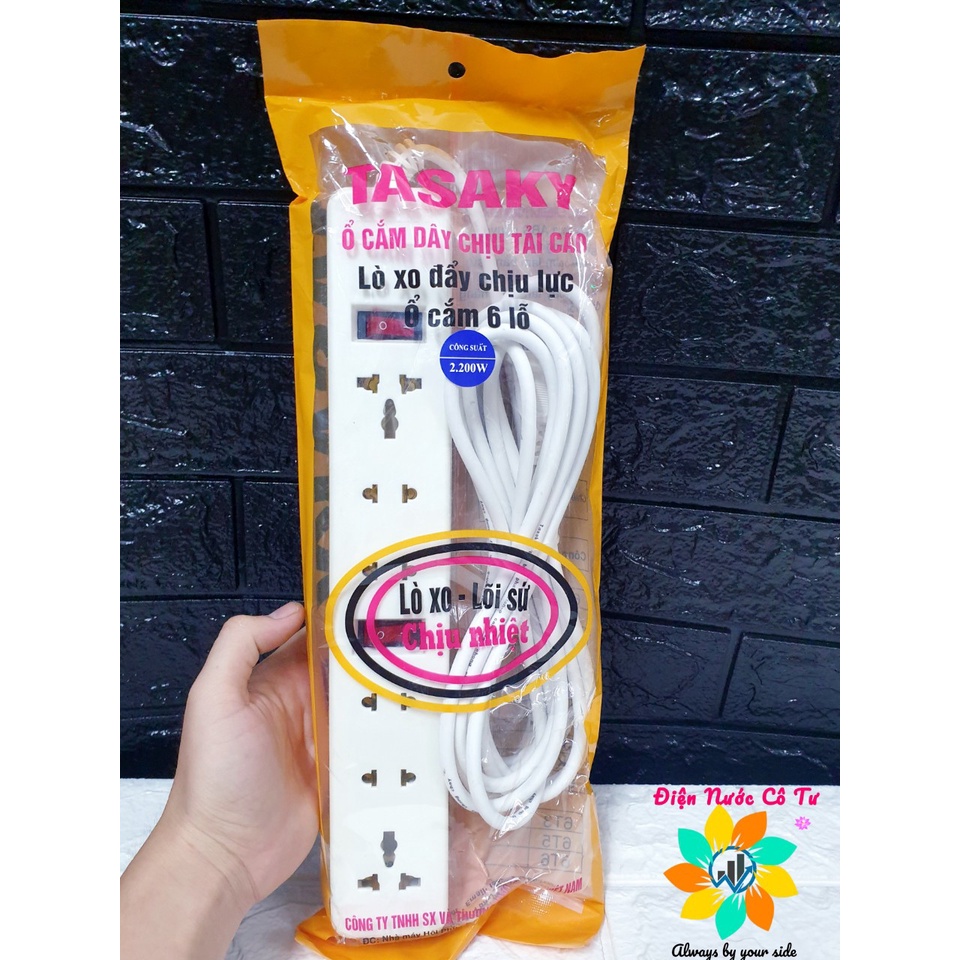 Ổ cắm lõi sứ kéo dài 6 lỗ cắm 2 công tắc chịu tải chịu nhiệt cao cấp Tasaky