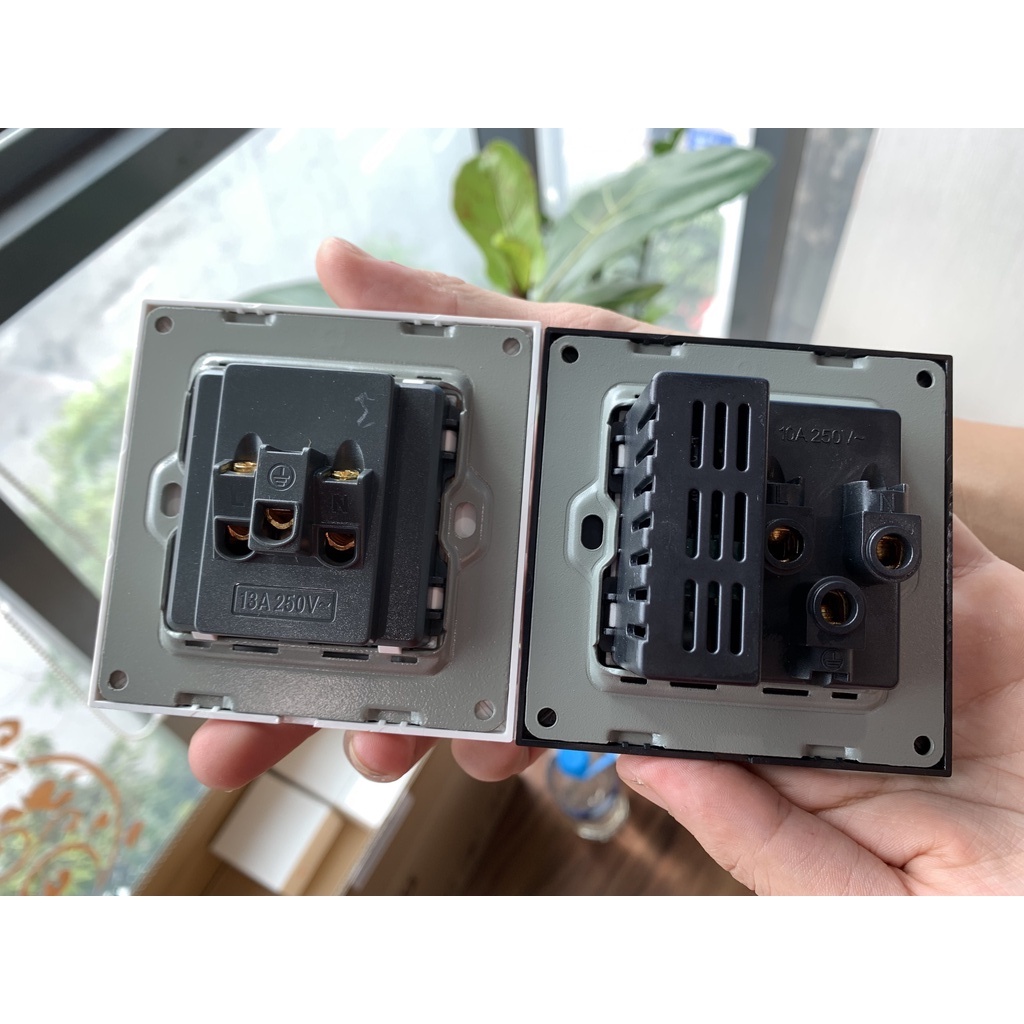 Ổ cắm điện đôi 3 chấuhỗ trợ chuẩn cắm châu âu với mặt kính cường lực