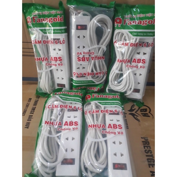 Thiết Bị Điện Gia Dụng > Mạch điện & Phụ tùng > Ổ cắm điện & Dây nối || Ổ cắm nhựa ABS siêu bền 6 lổ 2 công tắc 3mét FanagoldCòn hàng
