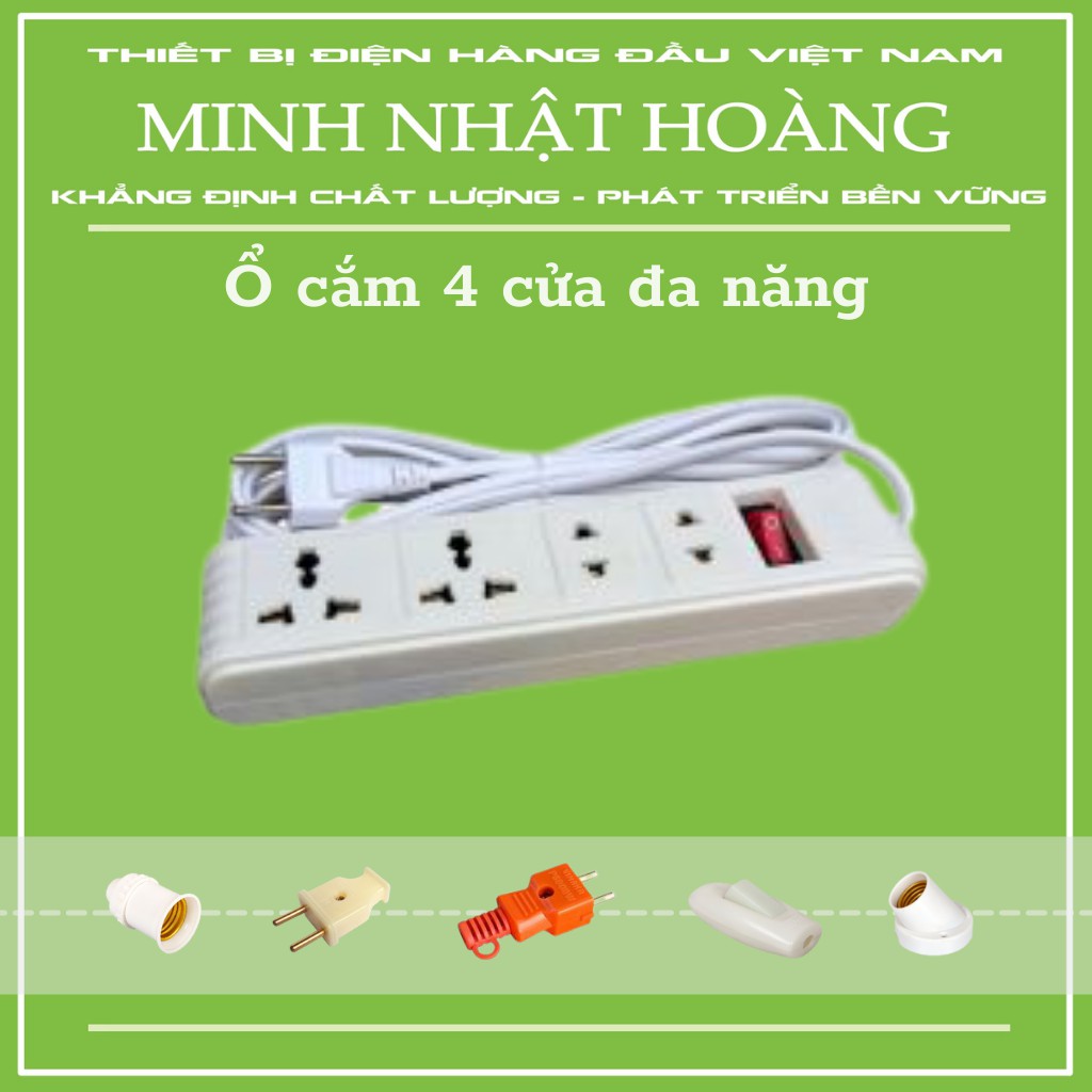 Ổ cắm nối dài 4 lỗ cắm liền dây dài đa năng chịu tải kéo dài dây 3m 5m dây diện màu trắng