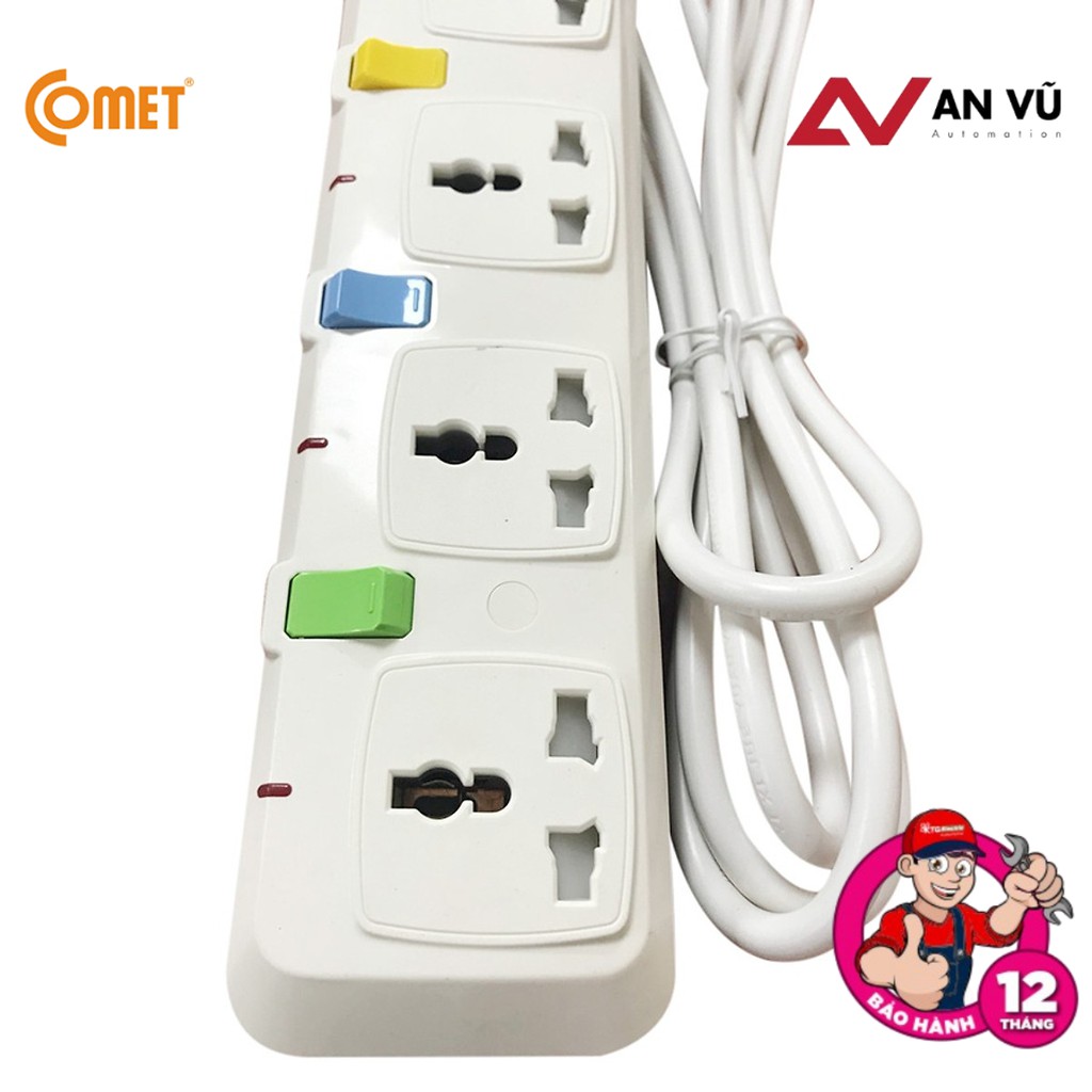 Giới thiệu Ổ cắm nối dài, ổ điện an toàn chính hãng Comet CESG2503 (5 ổ 3 chấu đa năng, dây 3m)