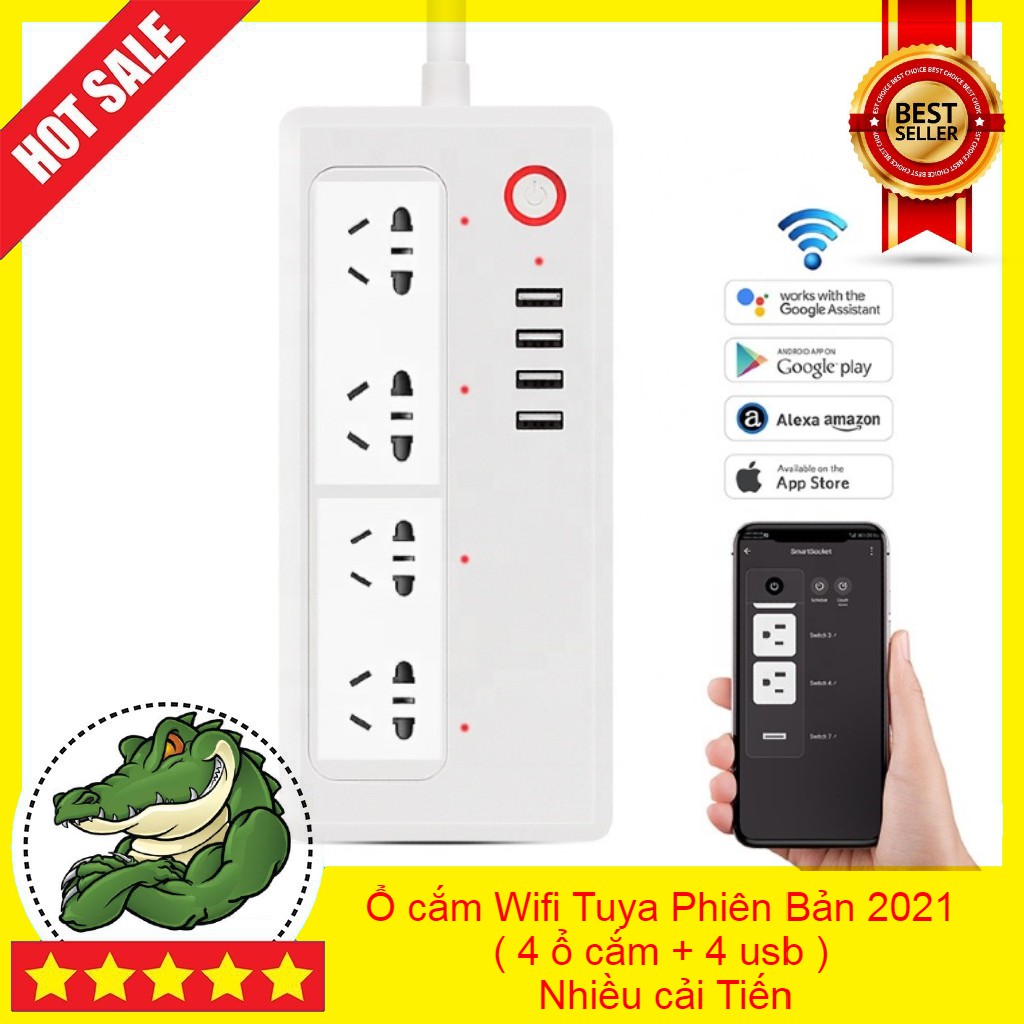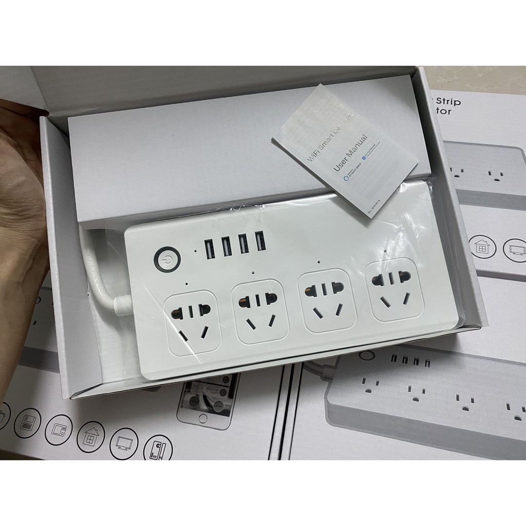 Ổ cắm nối dài thông minh Tuya Smart - Hẹn giờ bật tắt từng ổ qua App, 4 lỗ cắm và 4 cổng USB, bản đẹp 2021