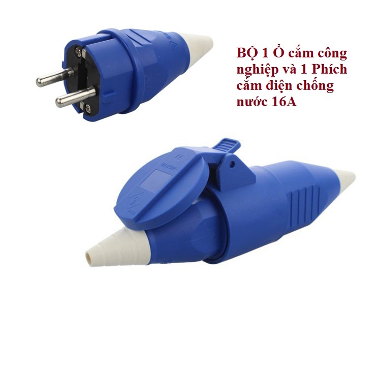 Ổ cắm công nghiệp chống nước có nắp 220v-250v - 16A - 2 chân – IP54Dùng cho điện 220v