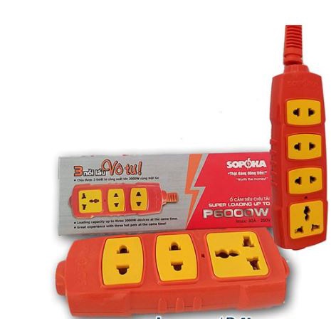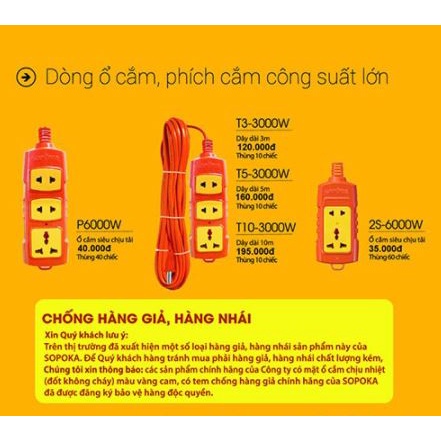 - Ổ cắm siêu chịu tải Sopoka công suất lên đến 6000W, có thể chịu được 3 thiết bị công suất lớn 2000W cùng một lúc, là sản phẩm vô cùng thích hợp cho các công trình xây dựng, các thiết bị điện có công suất lớn như máy hàn, máy cắt, máy mài và các dụng cụ cầm tay khác...