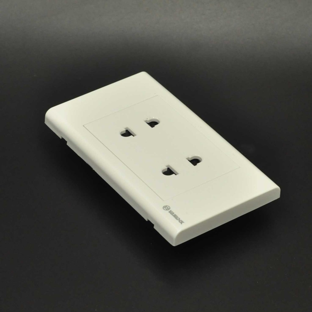 • Đế ổ cắm làm bằng nhựa polycarbonate chống cháy - nguyên chất (không có mùi khét như nhựa phế liệu,tái sinh)