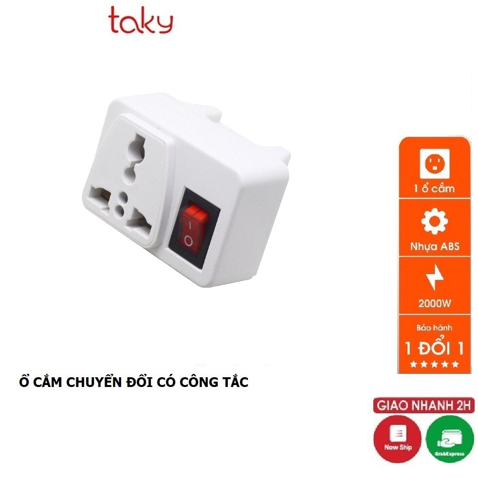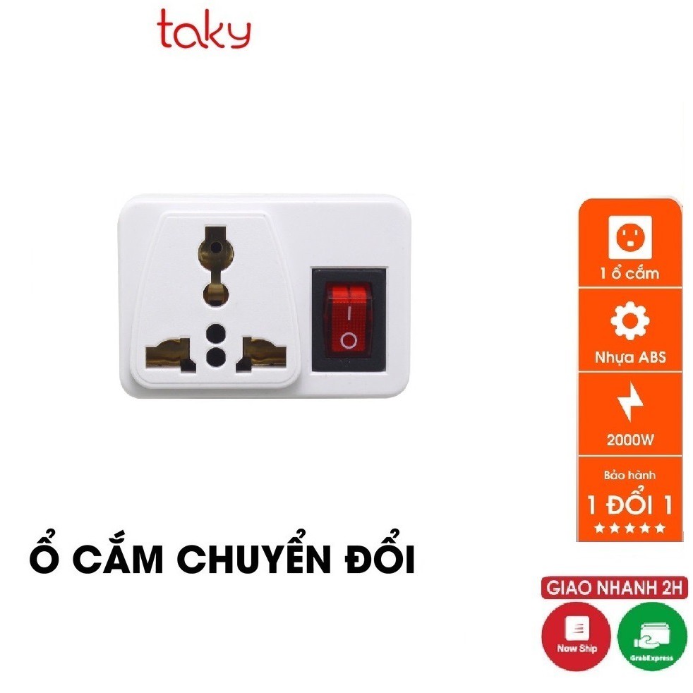 Ổ Cắm - Taky, Chuyển Đổi Từ 3 Chân Sang 2 Chân || 3 Chạc Sang 2 Chấu - Có Công Tắc An Toàn - Tiện Dụng, 8609