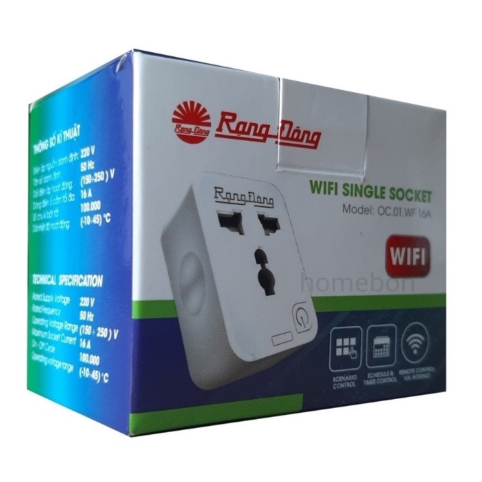 Ổ cắm Wifi Rạng Đông sẽ là lựa chọn tối ưu cho bạn. Ổ cắm Wifi dễ dàng biến các thiết bị điện thông thường trong gia đình thành thiết bị điện thông minh. Với ổ cắm Wifi, bạn có thể điều khiển cũng như hẹn giờ bật tắt cho các thiết bị điện từ xa qua ứng dụng Rạng Đông Smart, đồng thời tạo được các kịch bản thông minh như Về Nhà, Đi Ngủ, Tiếp Khách... giúp cuộc sống tiện nghi hơn.