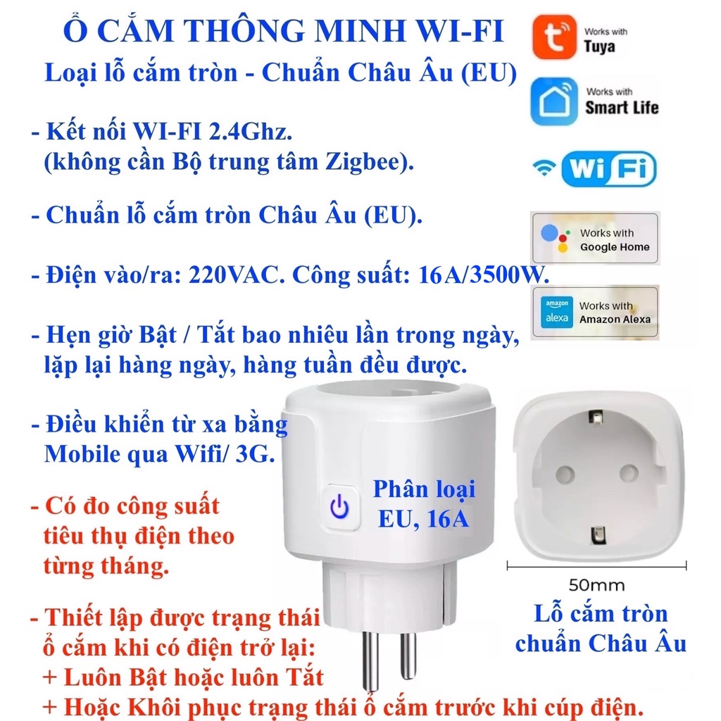 Ổ cắm Thông minh Wifi, Hẹn giờ Bật Tắt, Đo Công suất tiêu thụ 10A / 16A, Hệ Tuya / Smart Life -