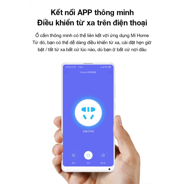 >Ổ cắm Gosund CP1 Xiaomi cho khả năng kết nối Wifi thông minh và đồng bộ với ứng dụng trên smartphone, cho phép người dùng dễ dàng bật hoặc tắt các thiết bị điện đang liên kết với ổ cắm một cách đơn giản nhất.