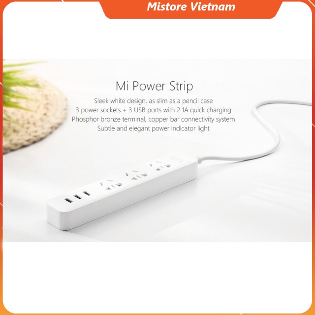 ➖ Mi power strip được thiết kế với 3 jack cắm điện, cắm được các phích cắm từ 2 chấu đến 3 chấu, tròn hay dẹp đều có thể cắm được. Ngoài ra còn được tích hợp 3 khe cắm USB.