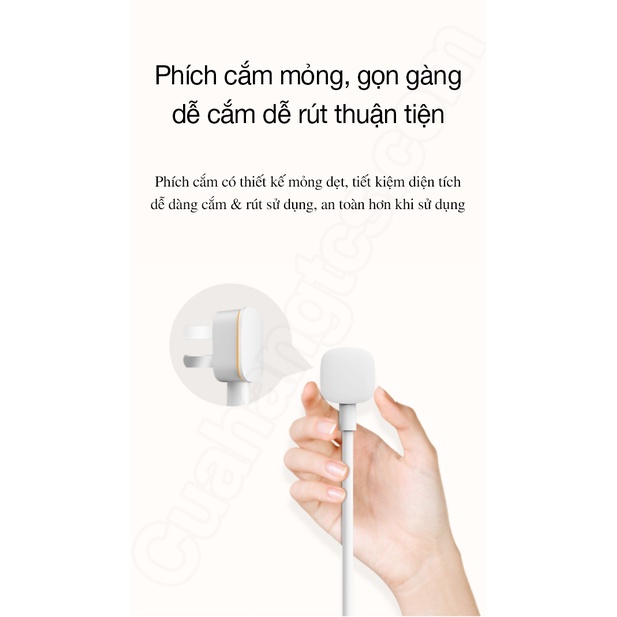 >Thiết kế phích cắm nhỏ, siêu mỏng không chỉ giúp tiết kiệm không gian cắm mà còn giúp các thao tác cắm, rút được đơn giản và dễ dàng hơn.
