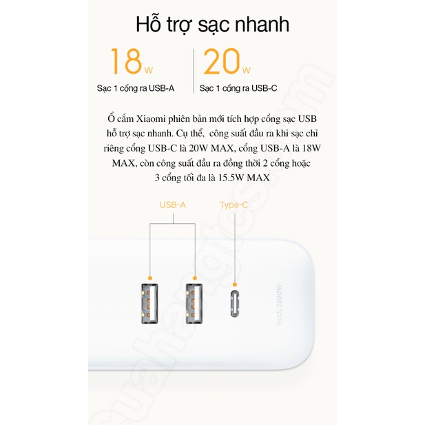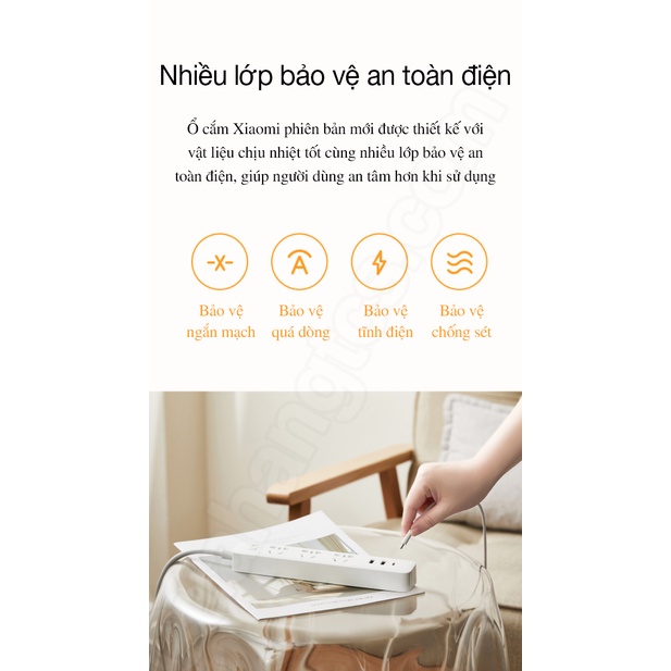 >Ổ cắm tích hợp sạc nhanh Xiaomi cũng được trang bị đầy đủ các bảo vệ mạch điện như ngắn mạch, quá dòng đầu ra, bảo vệ tĩnh, chống sét,...người dùng có an tâm sử dụng.