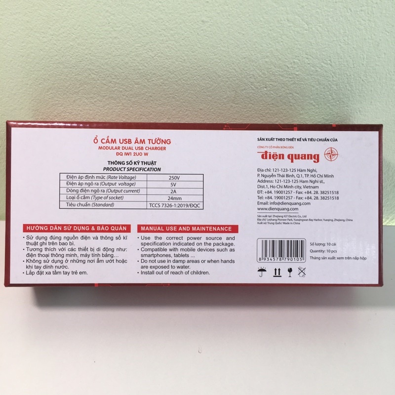 Ổ cắm USB âm tường Điện Quang DQHome ĐQ IW1 2UO W (màu trắng)1/ ĐIỂM ĐẶC BIỆT SẢN PHẨM: