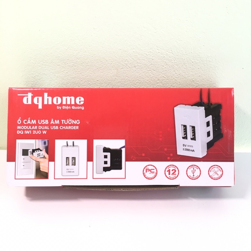 Thiết Bị Điện Gia Dụng > Mạch điện & Phụ tùng > Ổ cắm điện & Dây nối || Ổ cắm USB âm tường Điện Quang DQHome ĐQ IW1 2UO W (màu trắng)Còn hàng