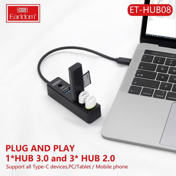 Cáp USB Hub Earldom HUB - 08 Type C Hỗ Trợ 3 Cổng USB 2.0 và 1 cổng USB 3.0- Cáp USB Earldom HUB-08 Type-C hỗ trợ tất cả các thiết bị Type C, PC, máy tính bảng, điện thoại di dộng