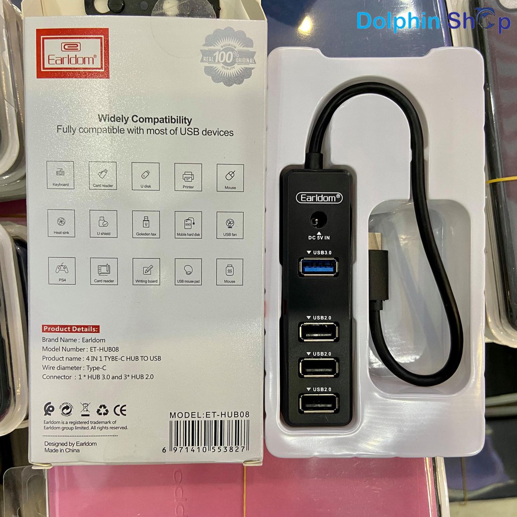 Cáp Usb Hub Earldom HUB - 08 Type C Hỗ Trợ 3 Cổng USB 2.0 và 1 cổng USB 3.0