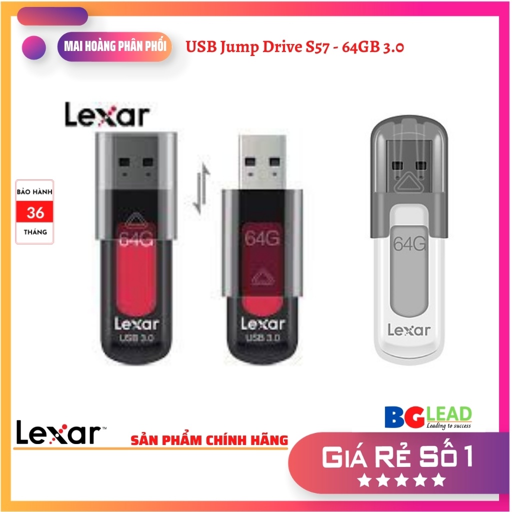 Ổ đĩa flash USB 3.0 hiệu suất cao Lexar JumpDrive S57 cho phép bạn chuyển nhanh chóng và an toàn các ảnh, video và tệp với tốc độ truyền lên tới 130MB / s. * Ổ đĩa có sẵn trong một loạt các dung lượng và màu sắc, và bao gồm một bảo hành ba năm. Tương thích ngược với các thiết bị USB 2.0.