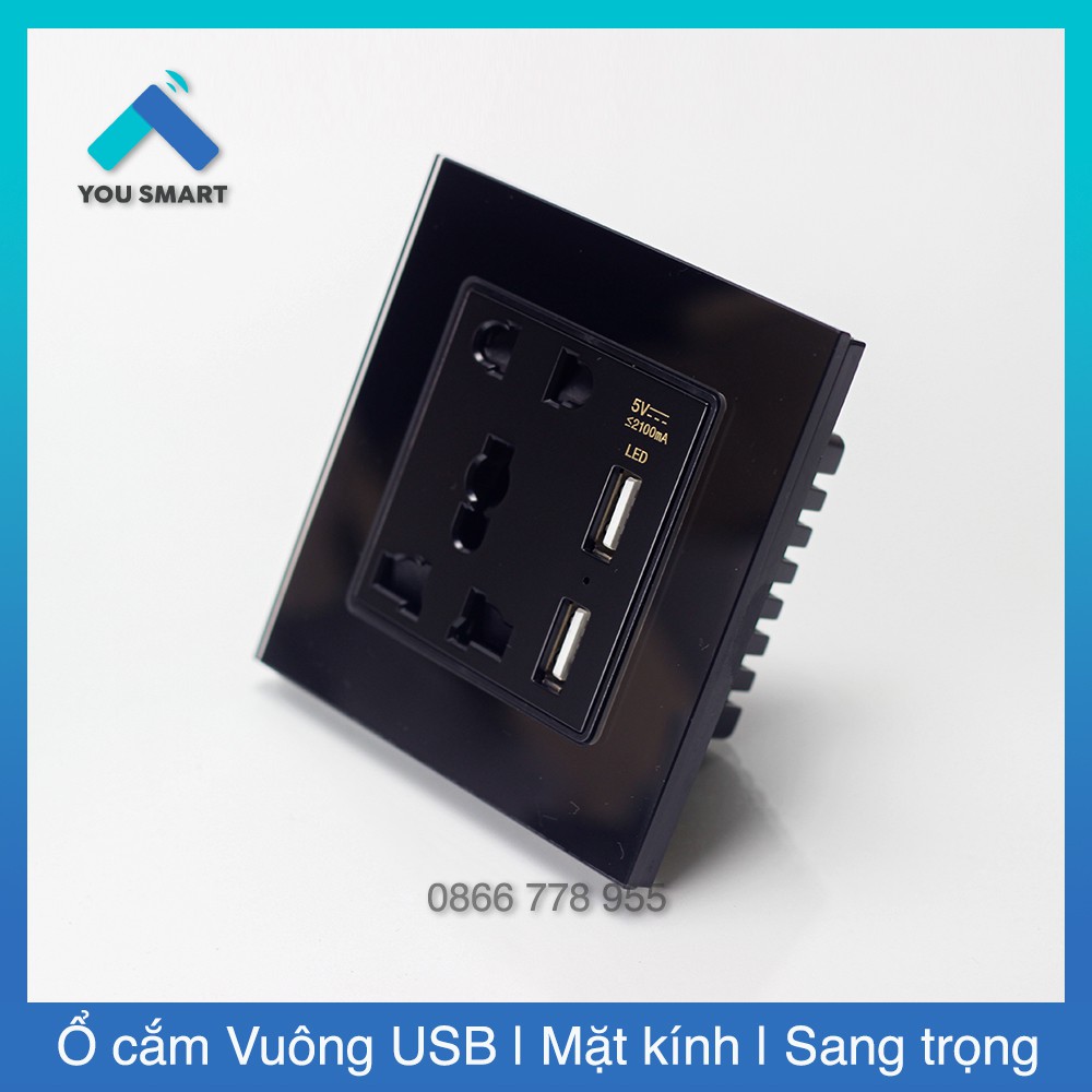 Ổ cắm Vuông kính cường lực 2 cổng USB
