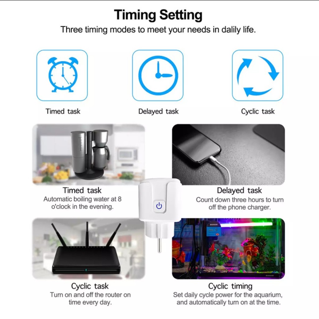 Thiết Bị Điện Gia Dụng > Mạch điện & Phụ tùng > Ổ cắm điện & Dây nối || Ổ cắm wifi 16A/EU Tuya Smartlife Hẹn giờ thông minh - Đo điện năng tiêu thụCòn hàng