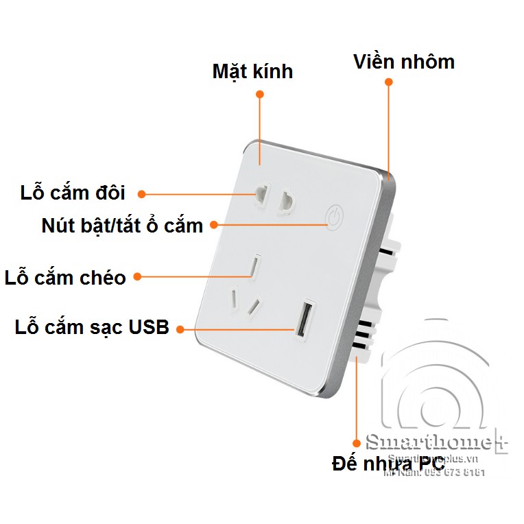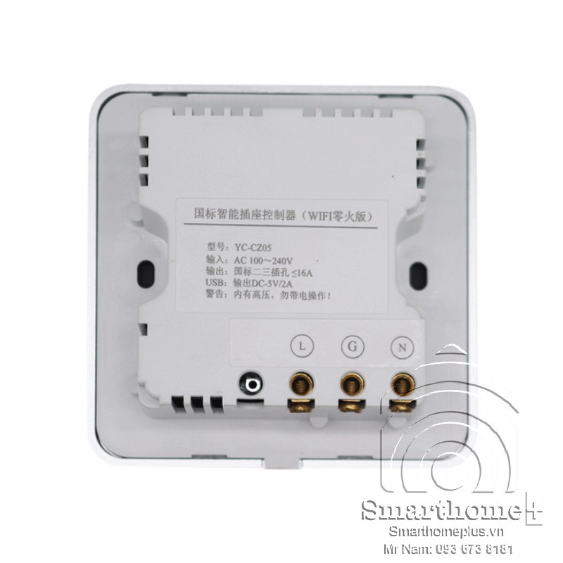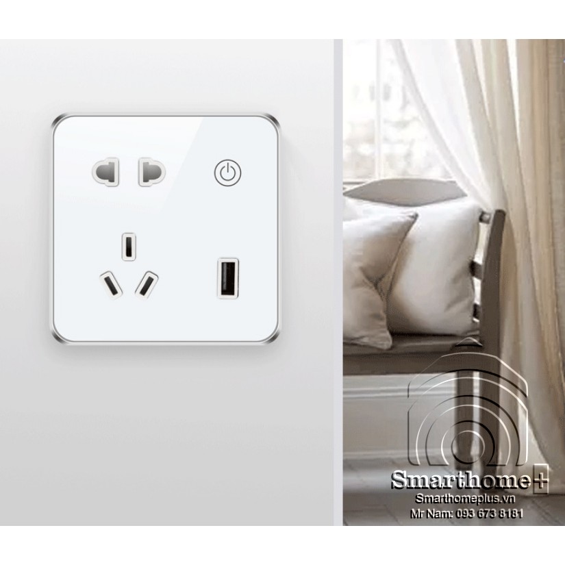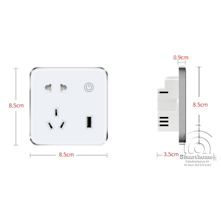 Ổ cắm thông minh kích thước 86x86 lắp vừa đế âm vuông sino, vanlock thông dụng ở Việt Nam.